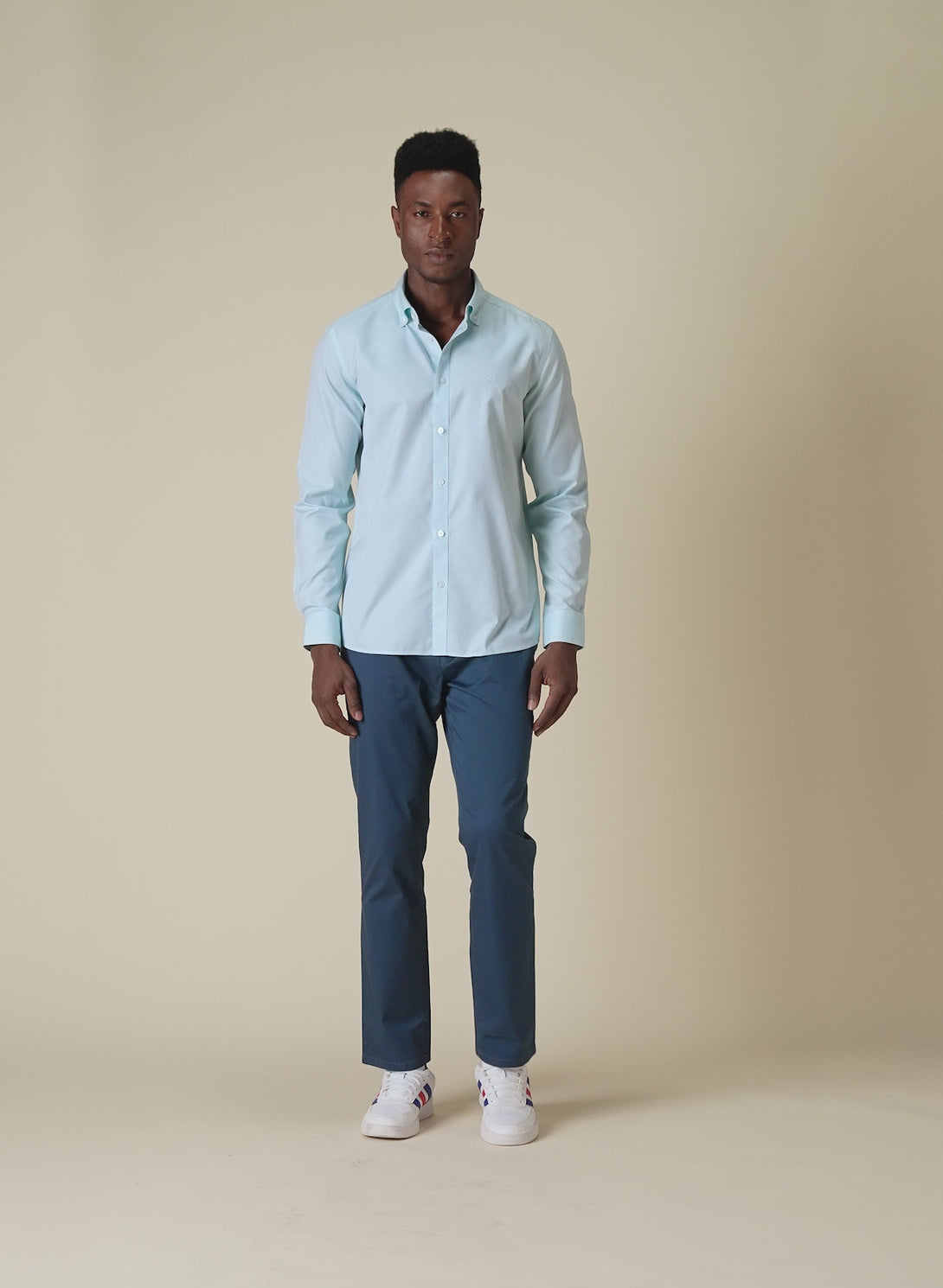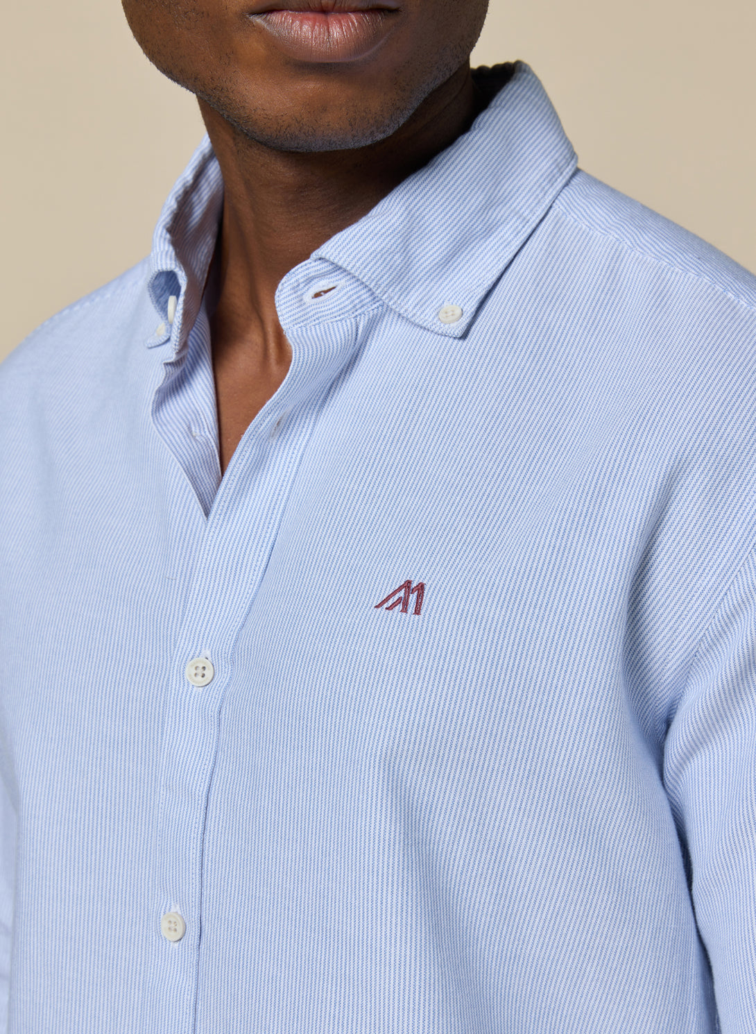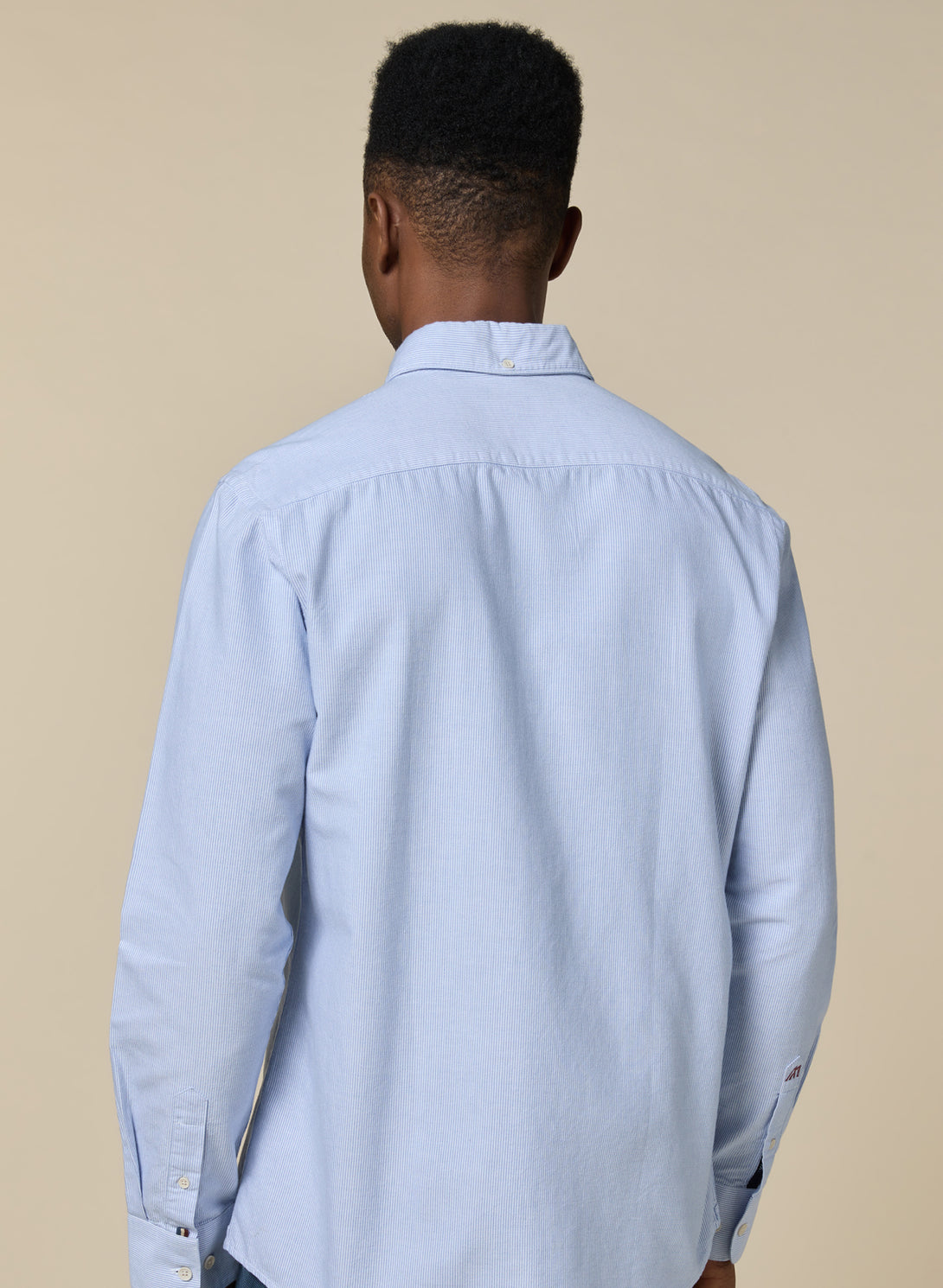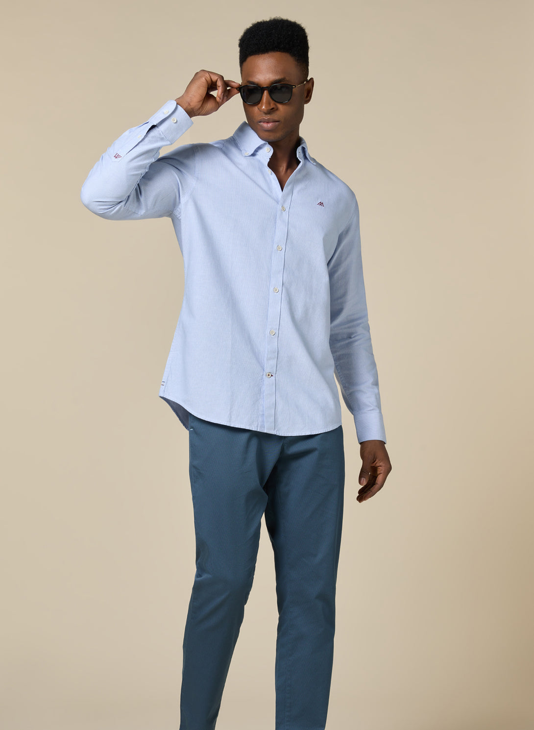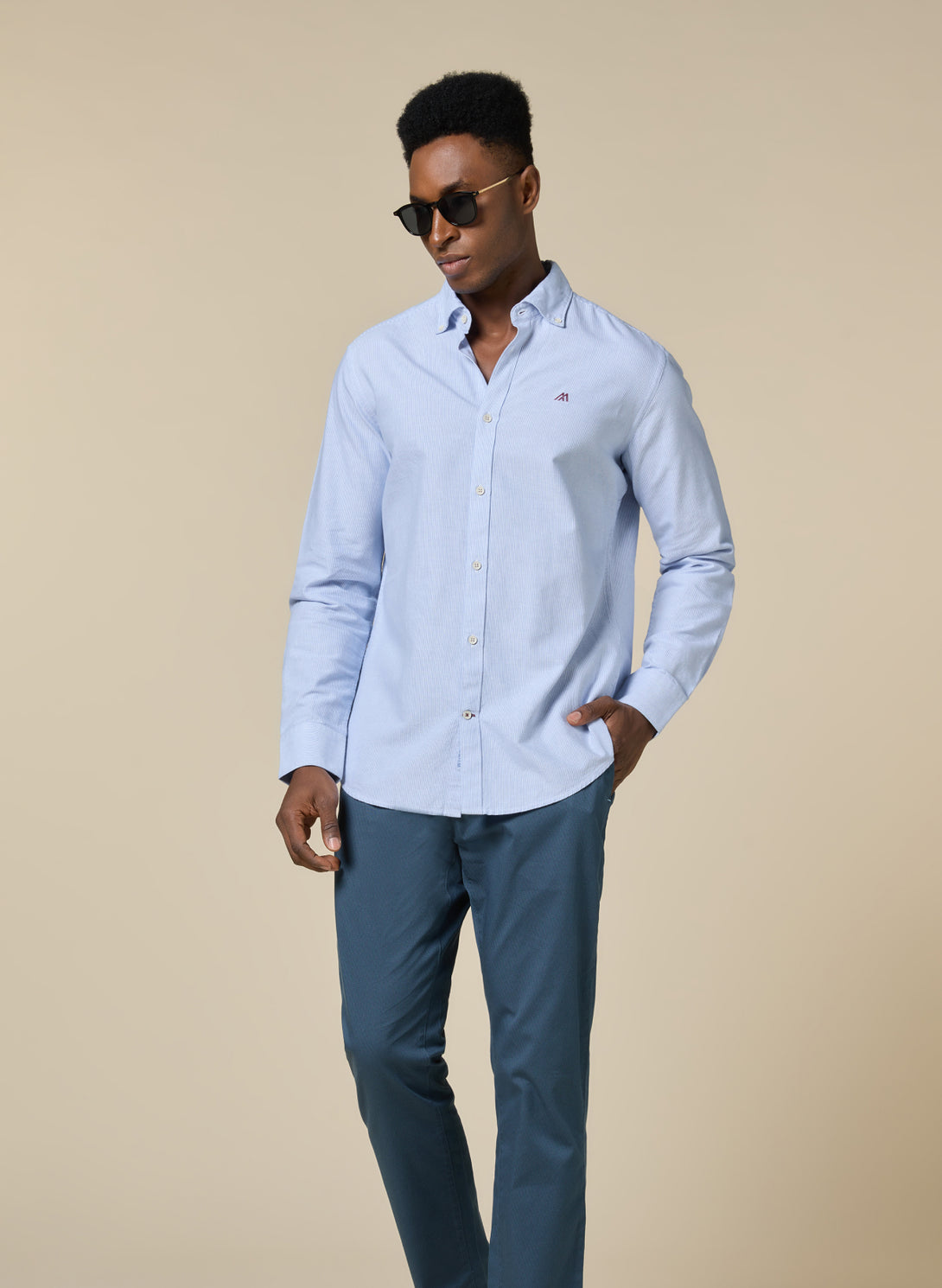 The Airy Pinstripe Sky Blue Oxford Shirt with Soft, Light Texture, Slim Fit
