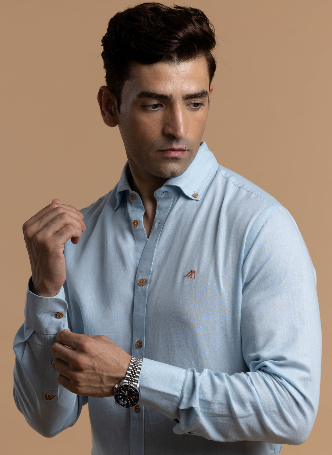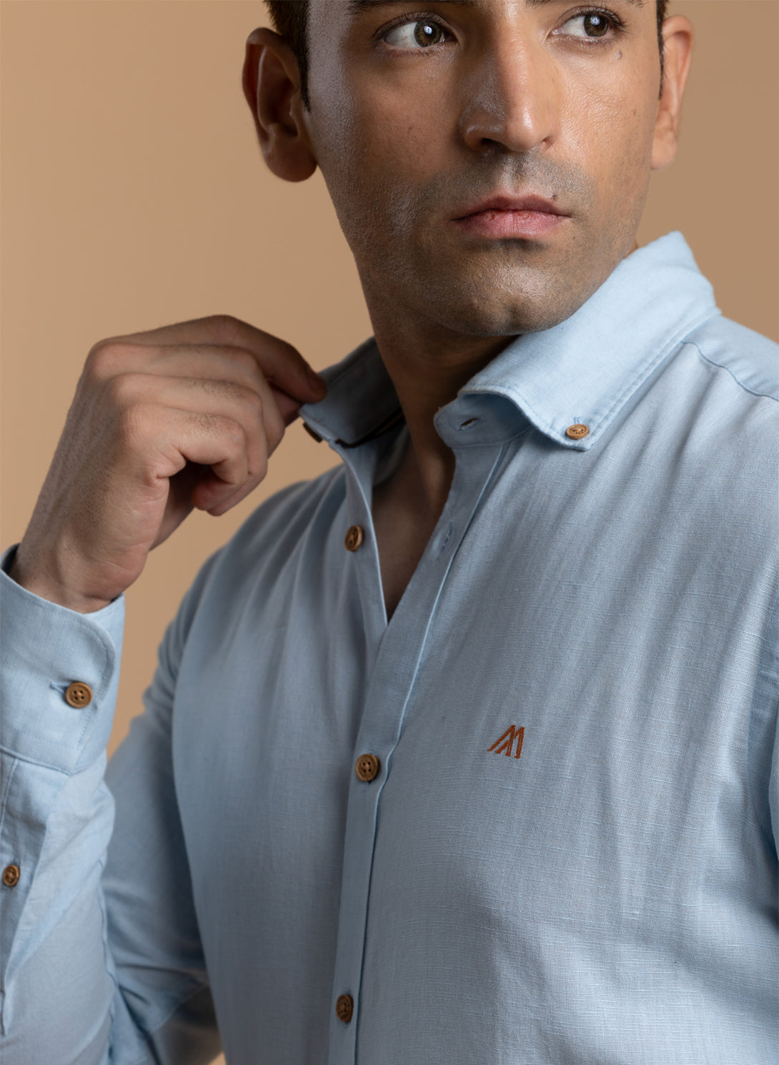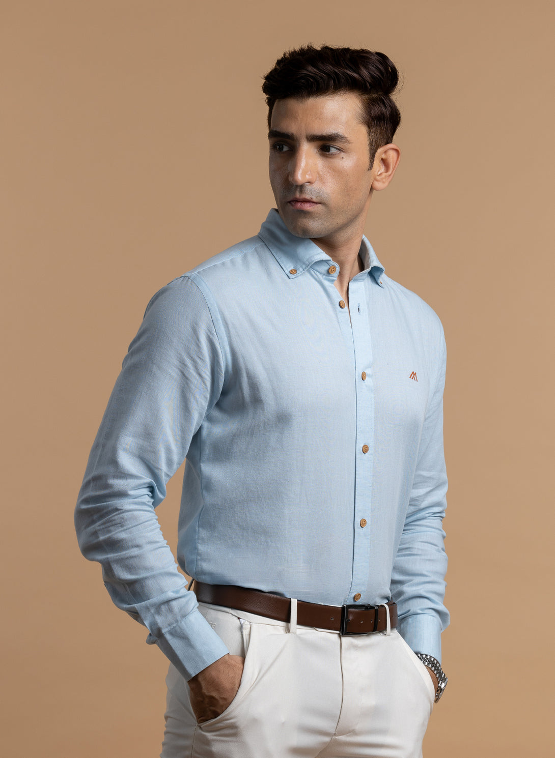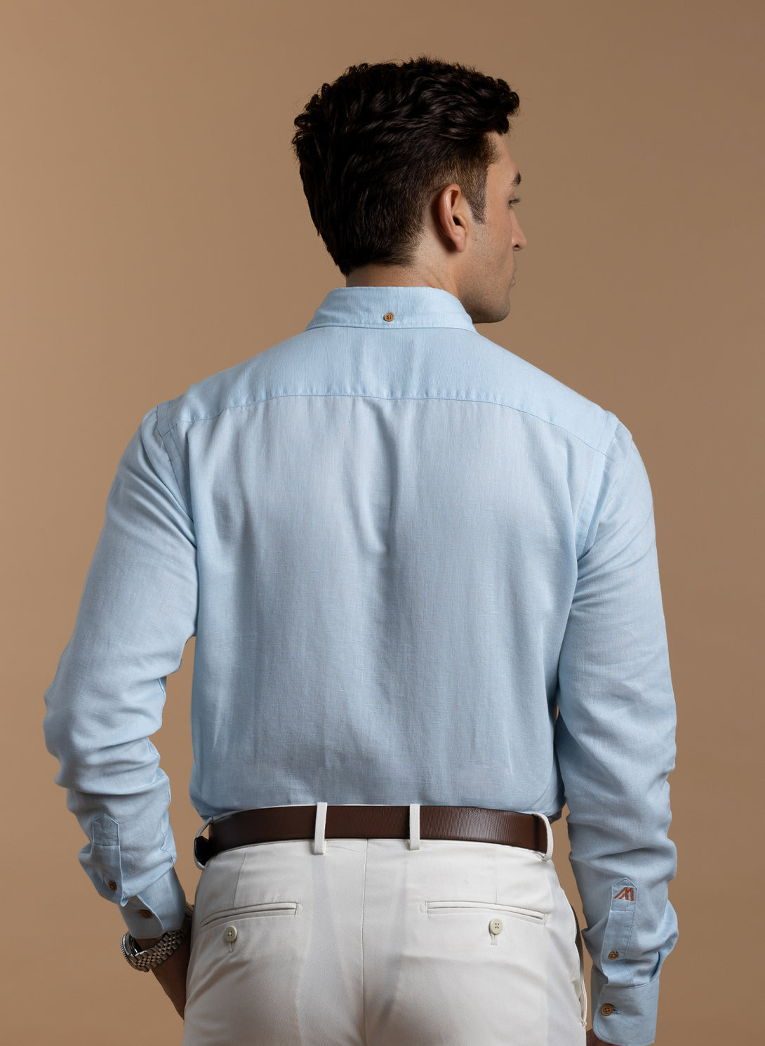 The Breezy Linen Sky Blue Shirt with Lightweight Relaxed Fit, Comfort Fit