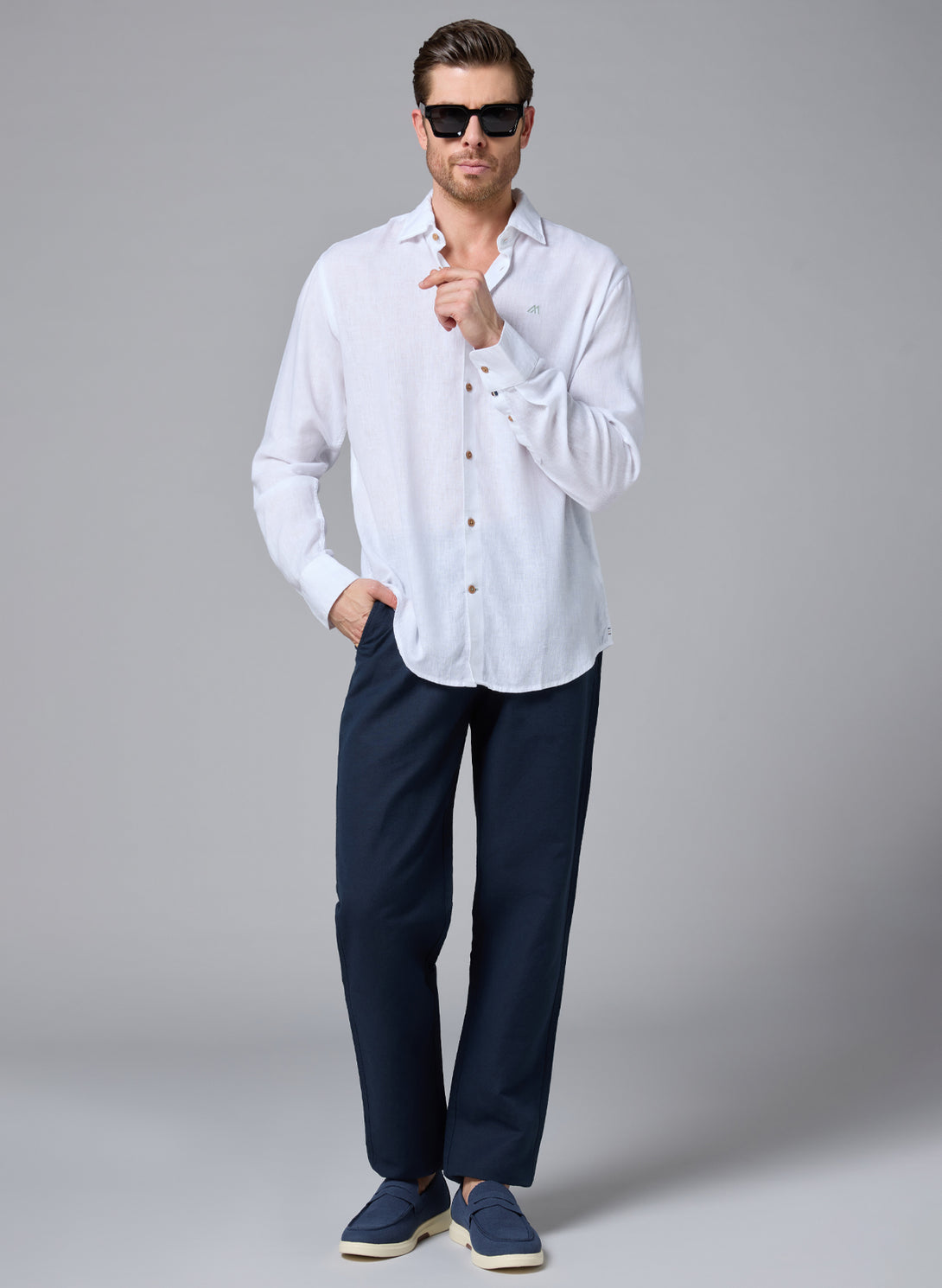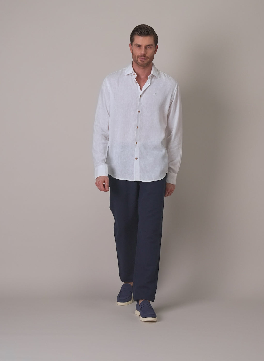 Weightless comfort meets polished style. The 71% lyocell/22% linen blend creates a shirt that feels like wearing air while maintaining structure. The white hue keeps it versatile for any occasion.