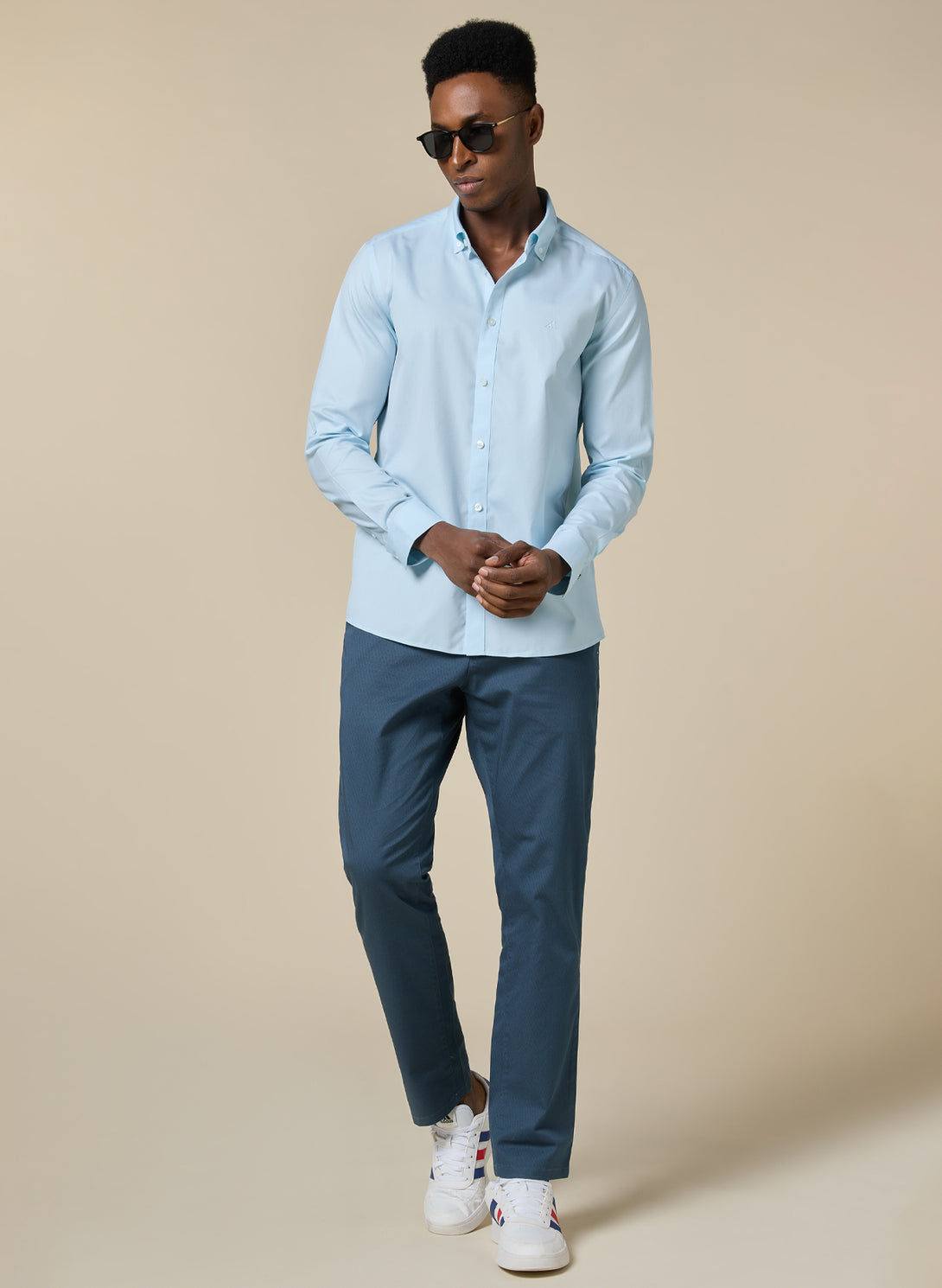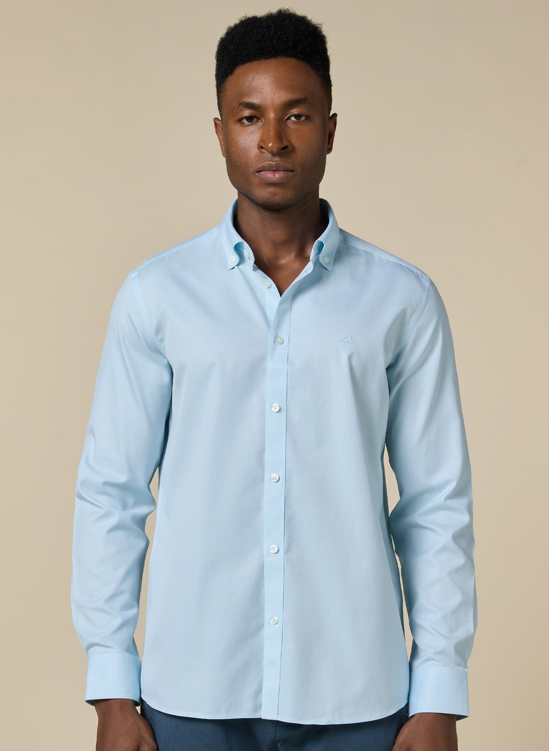 The Coastal Cool Sea Blue Non-Iron 120s Royal Oxford Shirt with Lightweight Feel, Slim Fit