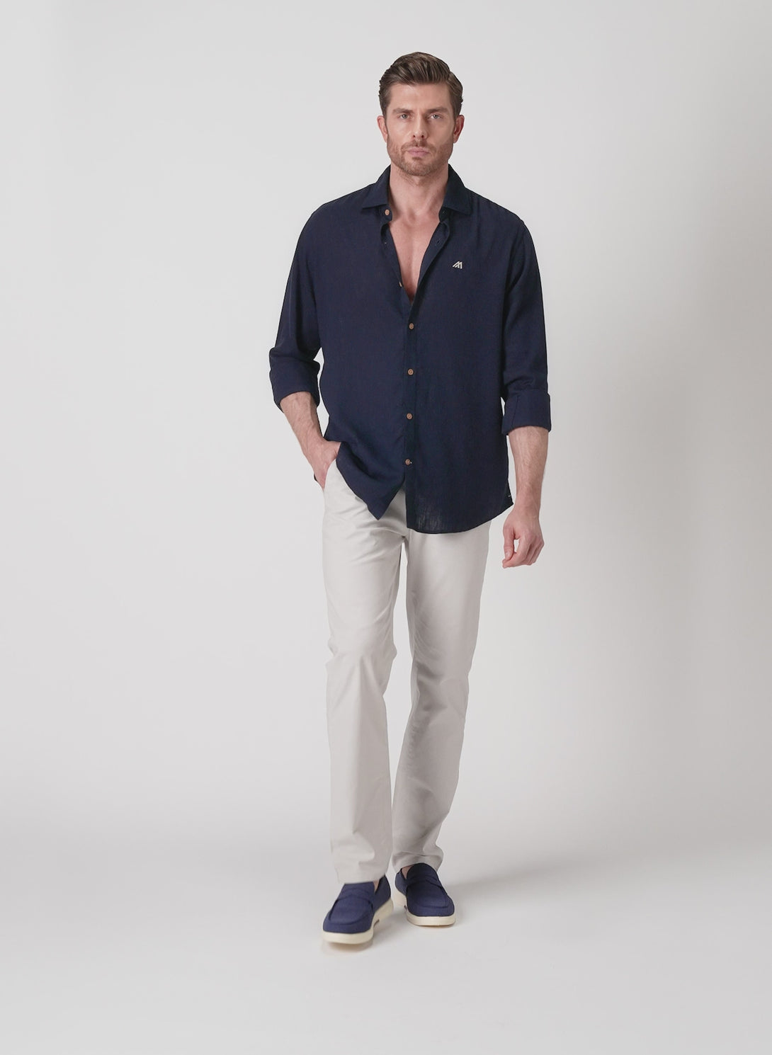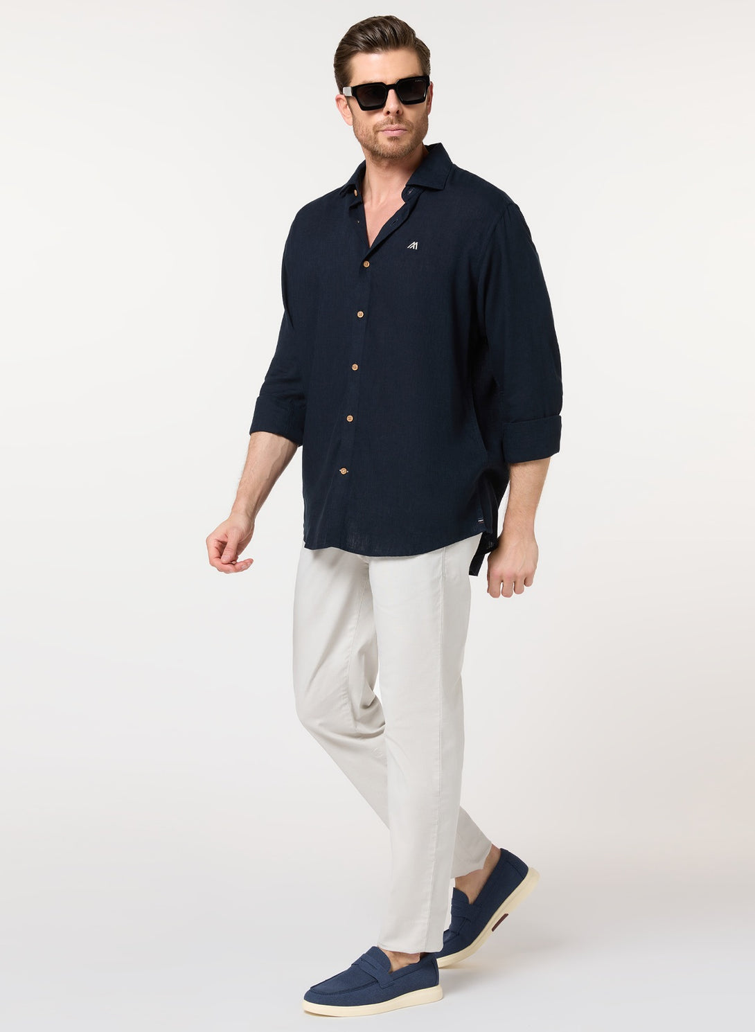 Evening elegance made easy. The deep navy hue works for all occasions, while the lyocell-linen blend provides superior drape and comfort. Dress it up or down with ease.