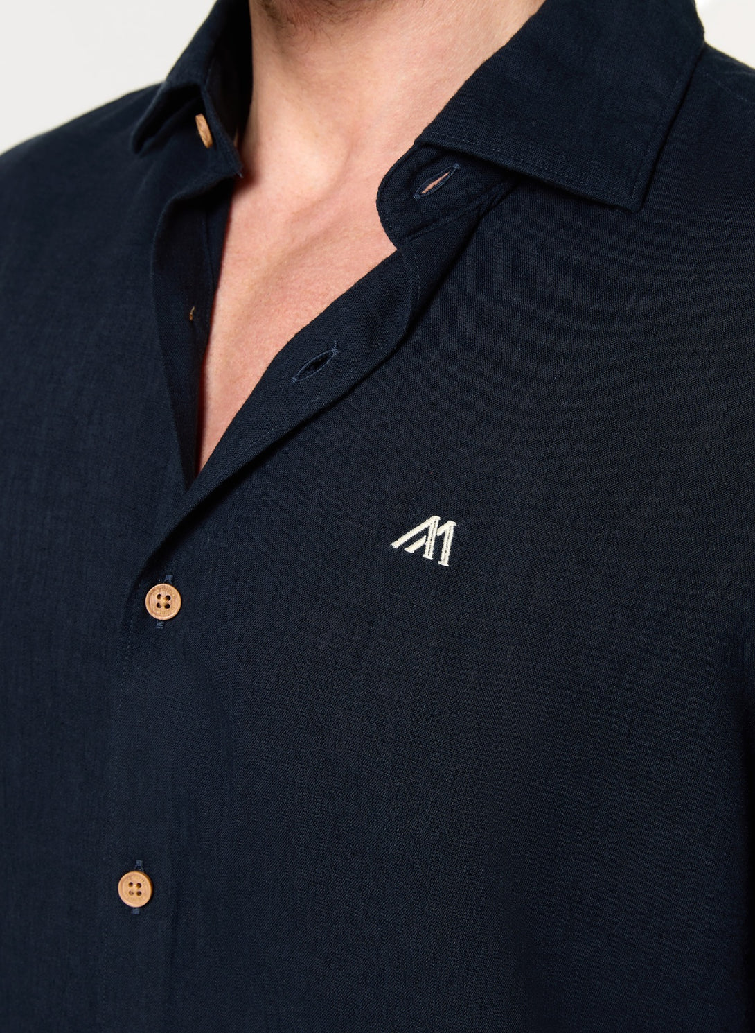 The Deep Night Navy Lyocell Shirt with Smooth Elegance, Comfort Fit