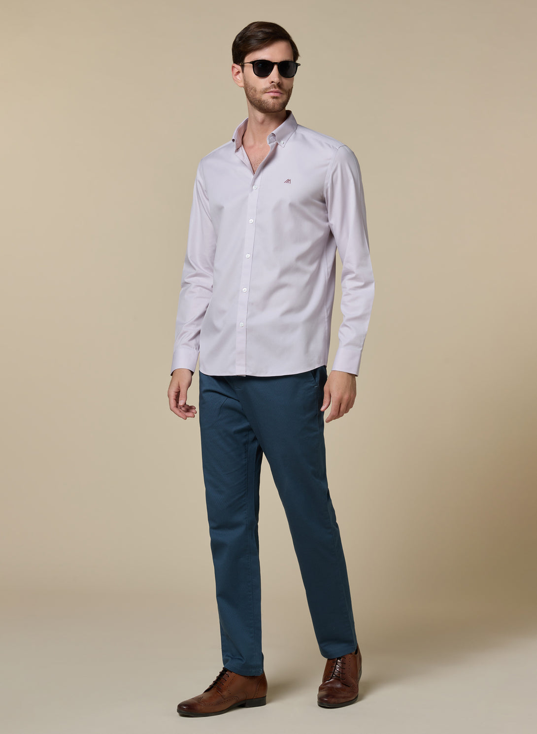 Warm sophistication for every occasion. The light brown hue of this 120s royal Oxford shirt adds richness to your wardrobe, while the non-iron treatment ensures you always look put-together. Perfect for fall layering under sweaters or wearing solo with dark denim.