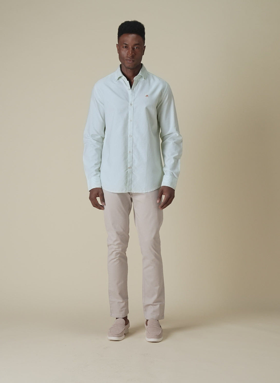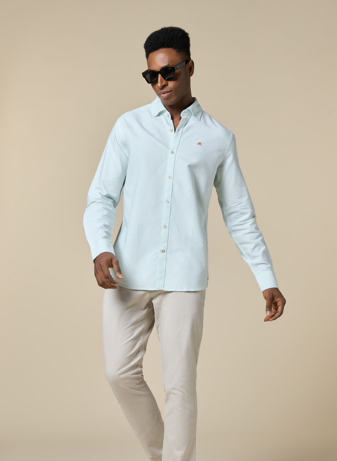 The Fresh Stripe Light Green Oxford Shirt with Vibrant Weave, Slim Fit