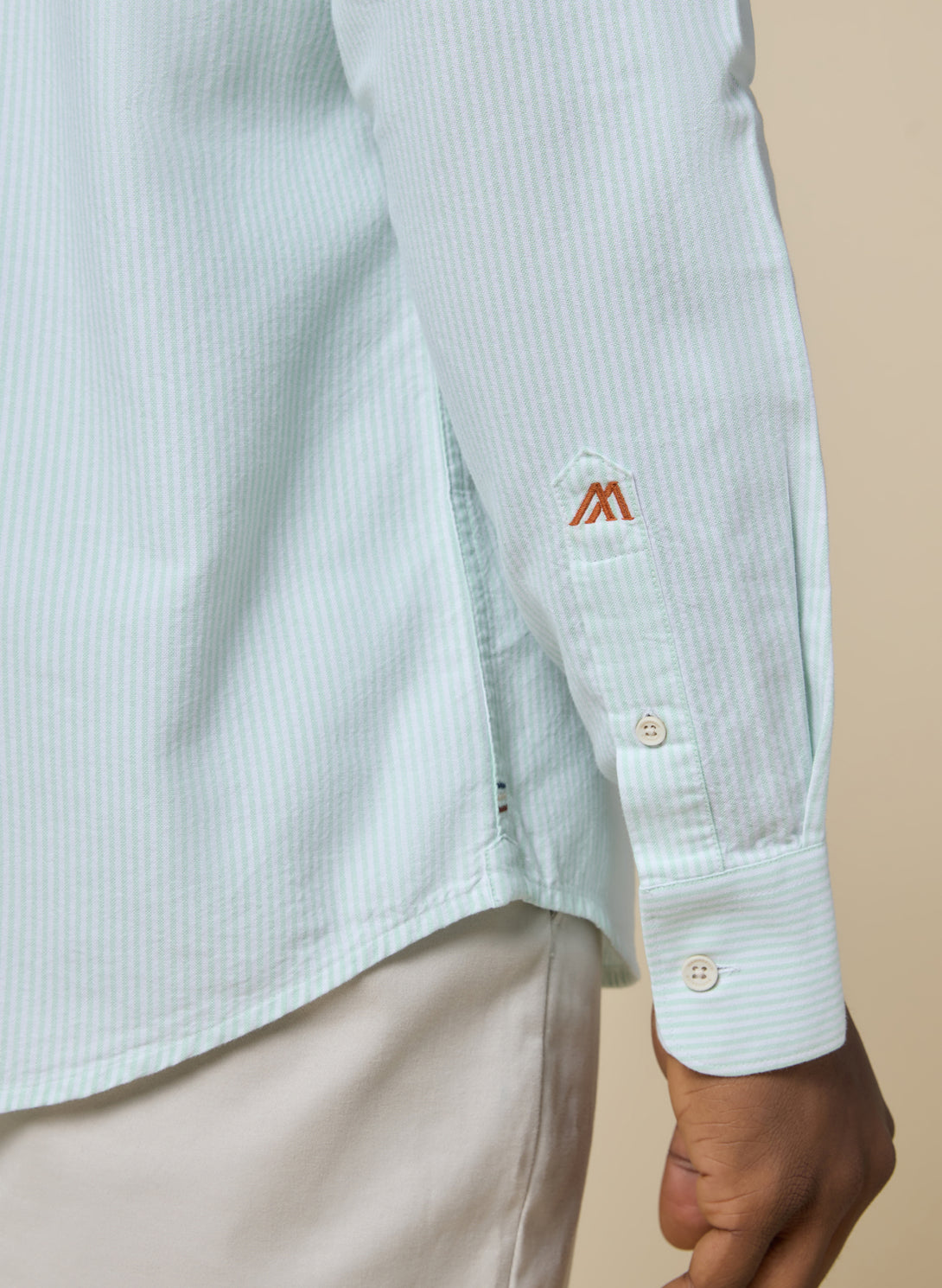 Like a breath of fresh air. The minty green stripes bring life to your casual rotation, with the same 100% cotton Oxford quality you expect. Perfect for spring brunches or when you want to add a hit of color to your workwear rotation.