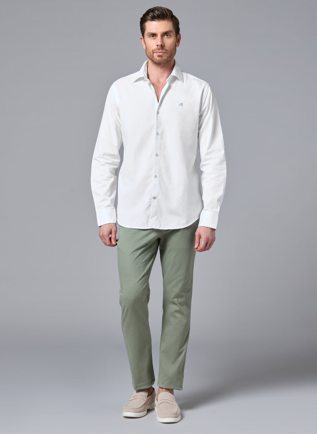 The Luminous Twill White Shirt with Silky Sheen, Slim Fit