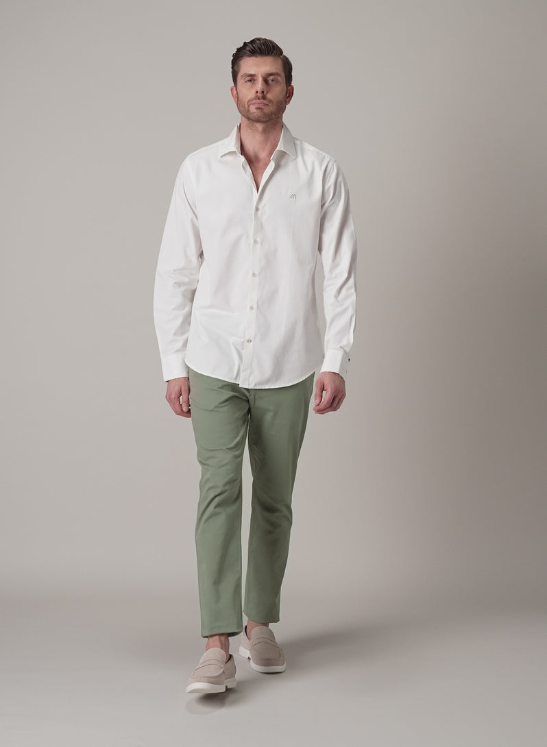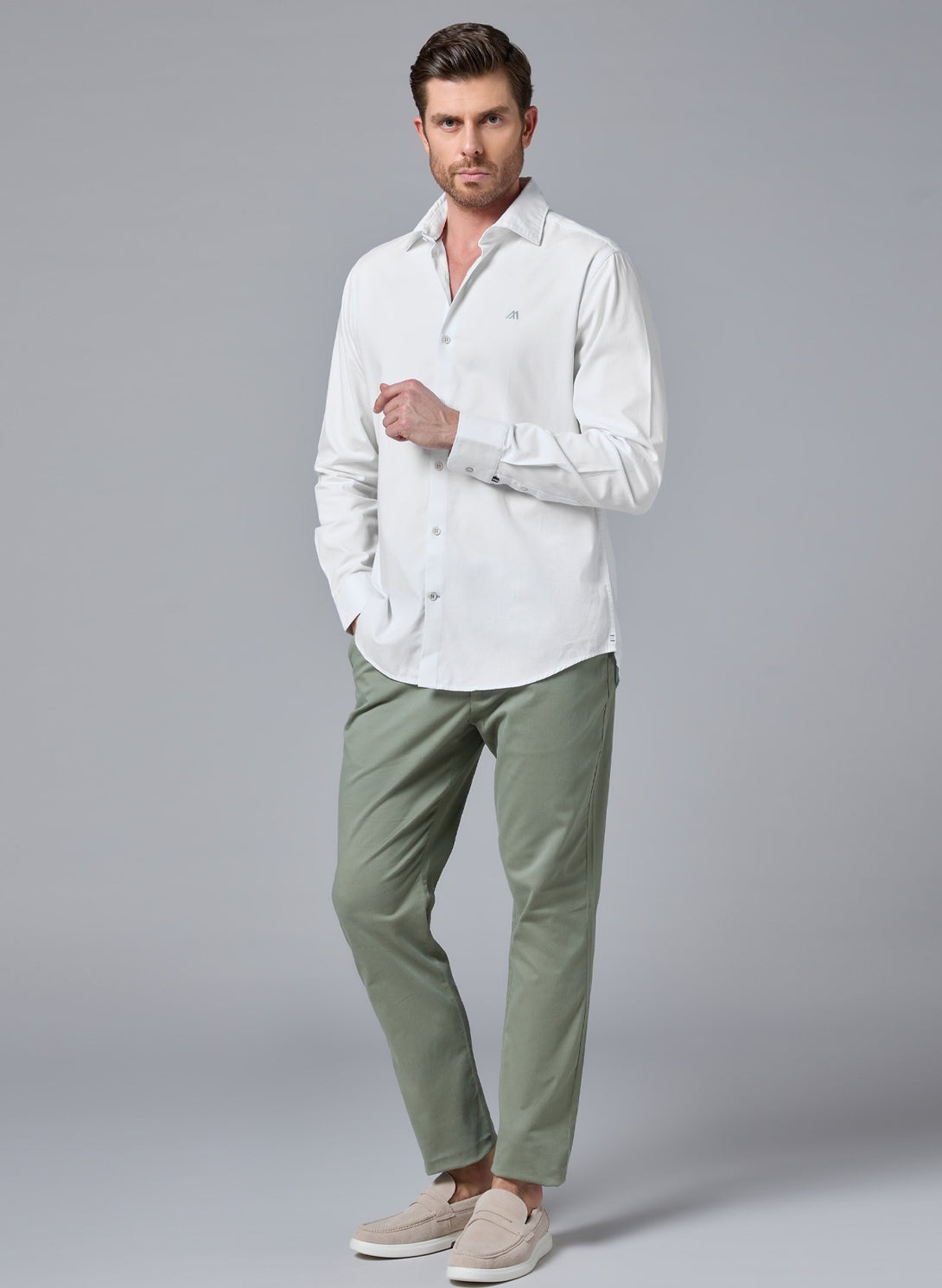 Glow with understated elegance in this luminous white shirt. The peach-twill weave creates a subtle sheen that catches the light beautifully, while the 100% cotton construction keeps you cool and comfortable. Perfect for summer weddings or important meetings where you want to look polished yet approachable.