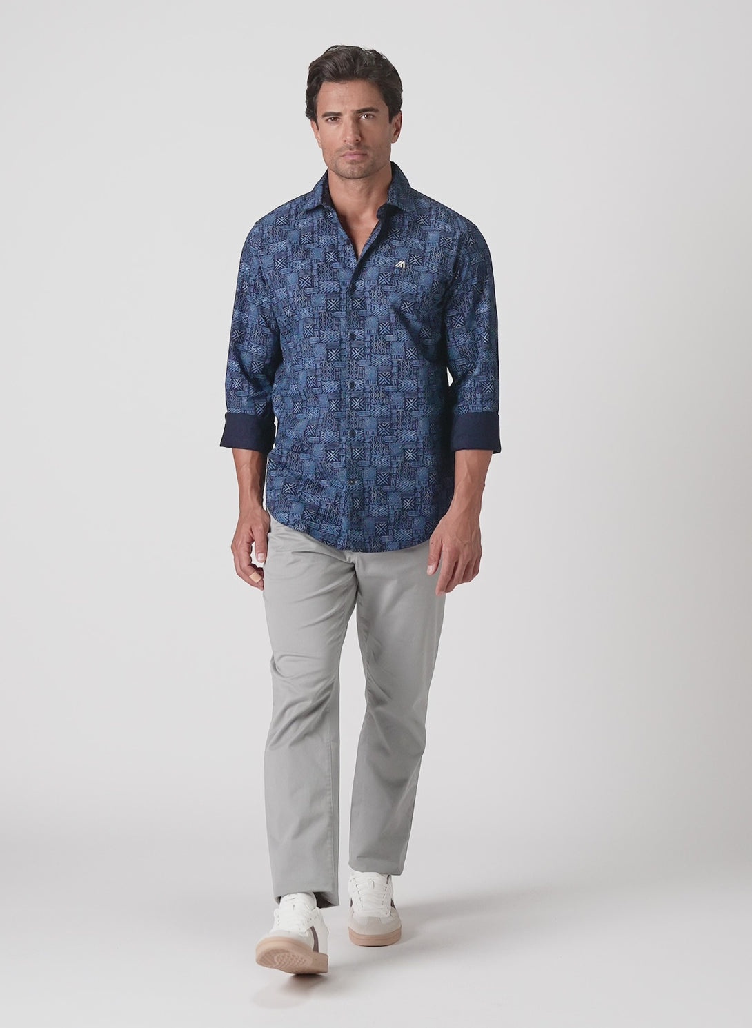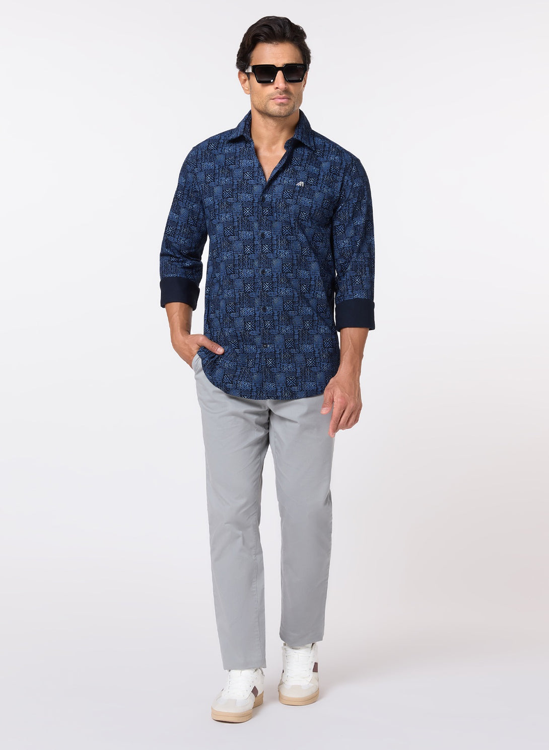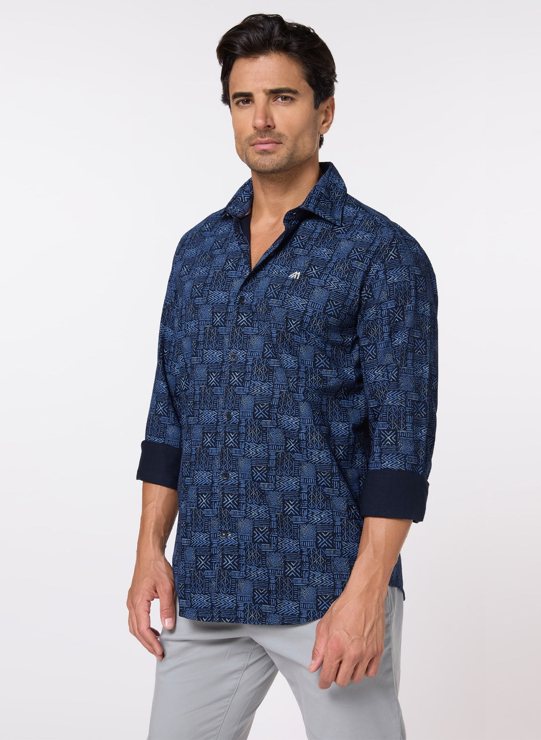 The Luxe Print Navy Oxford Shirt with Rich Printed Finish, Slim Fit