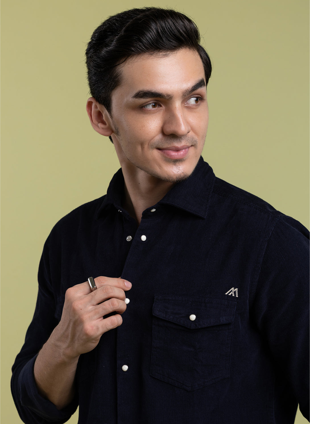 The Midnight Corduroy Black Shirt with Luxuriously Soft Velvet Touch, Slim Fit