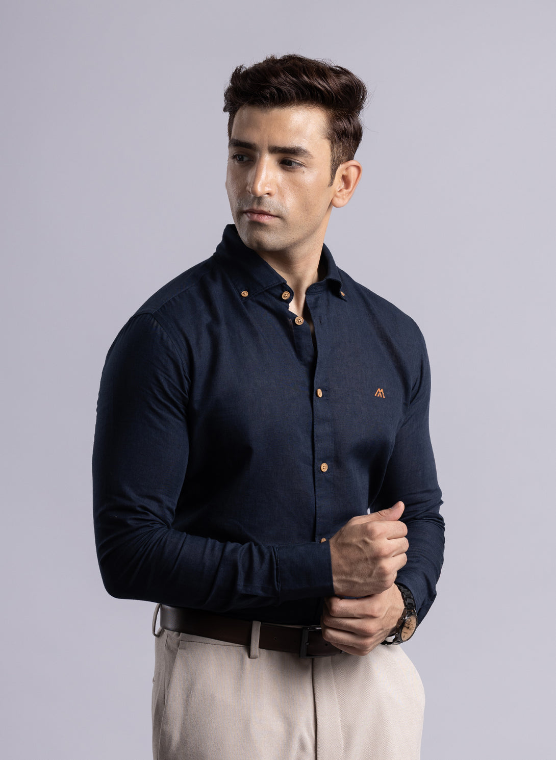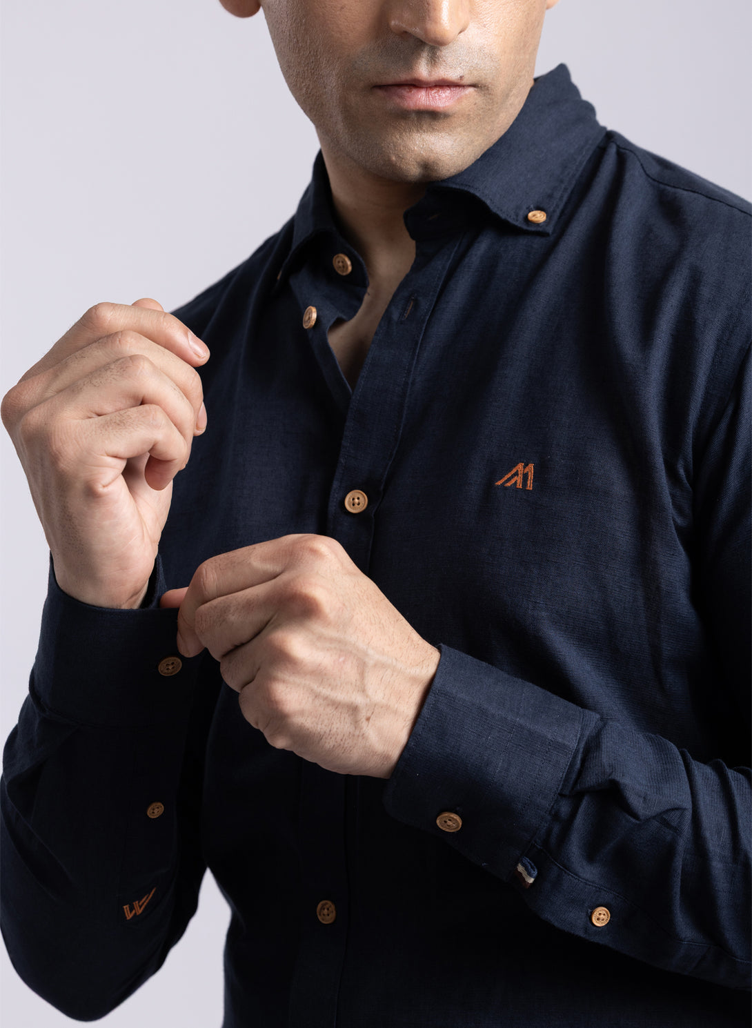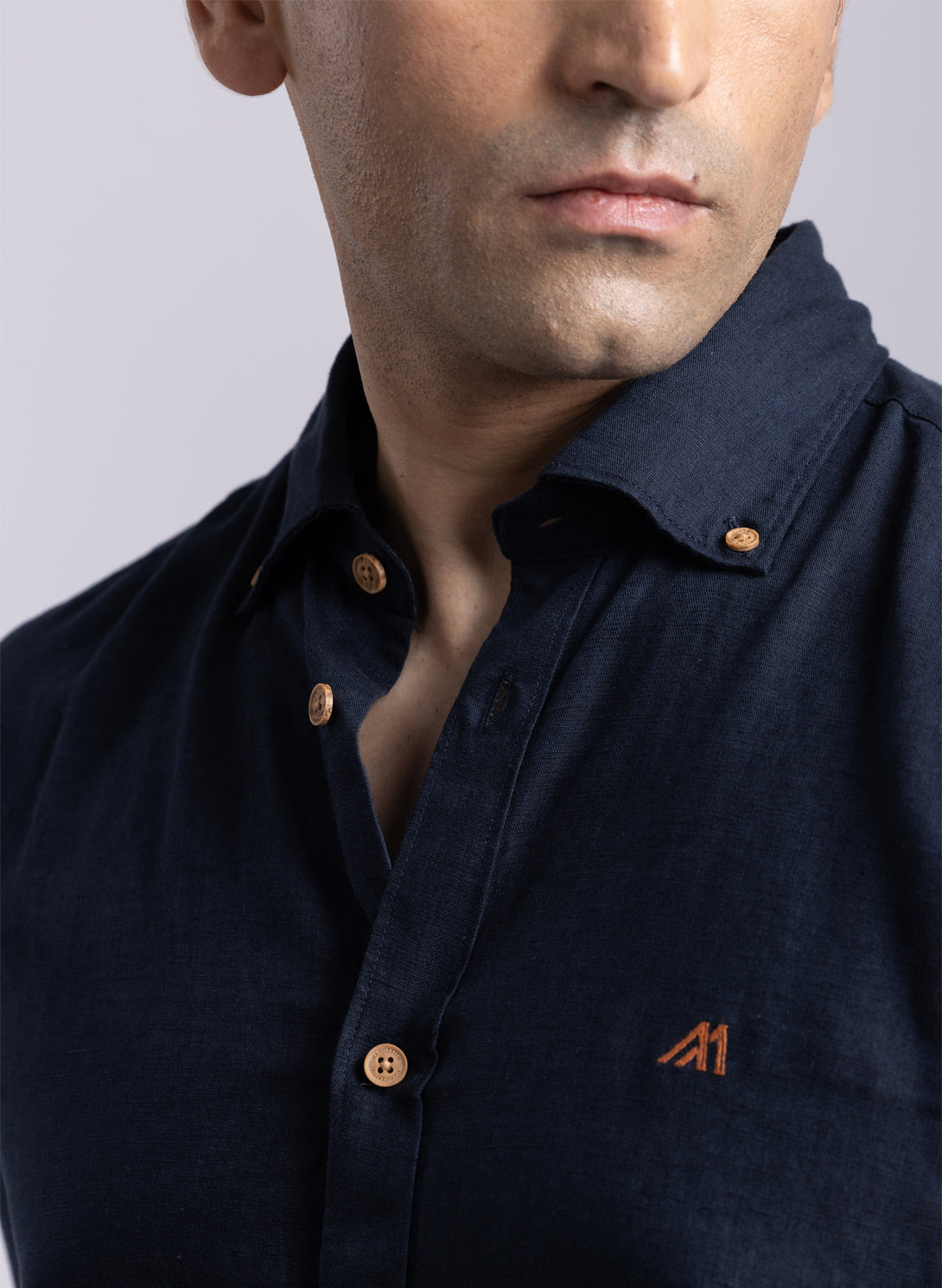 The Nautical Classic Navy Linen Shirt with Crisp Breathability, Comfort Fit