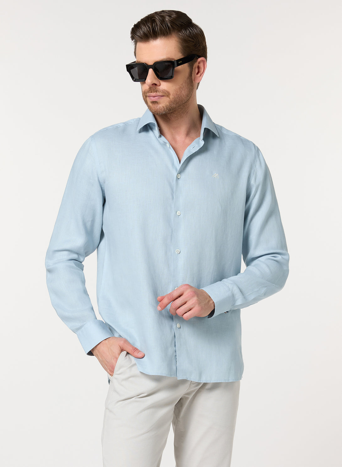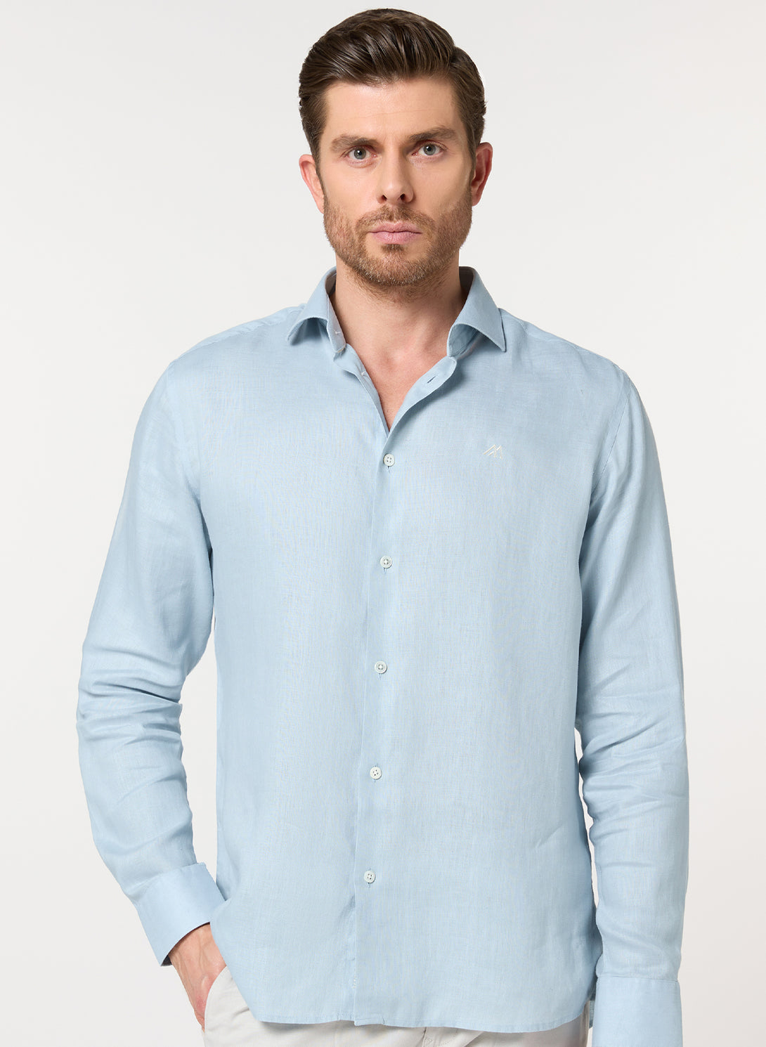 Breezy sophistication with no fuss. The 100% linen construction offers superior breathability with easy-care convenience. The sea green hue evokes coastal calm.