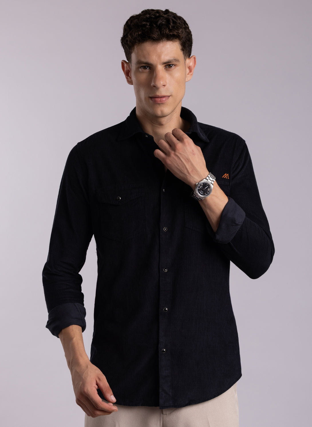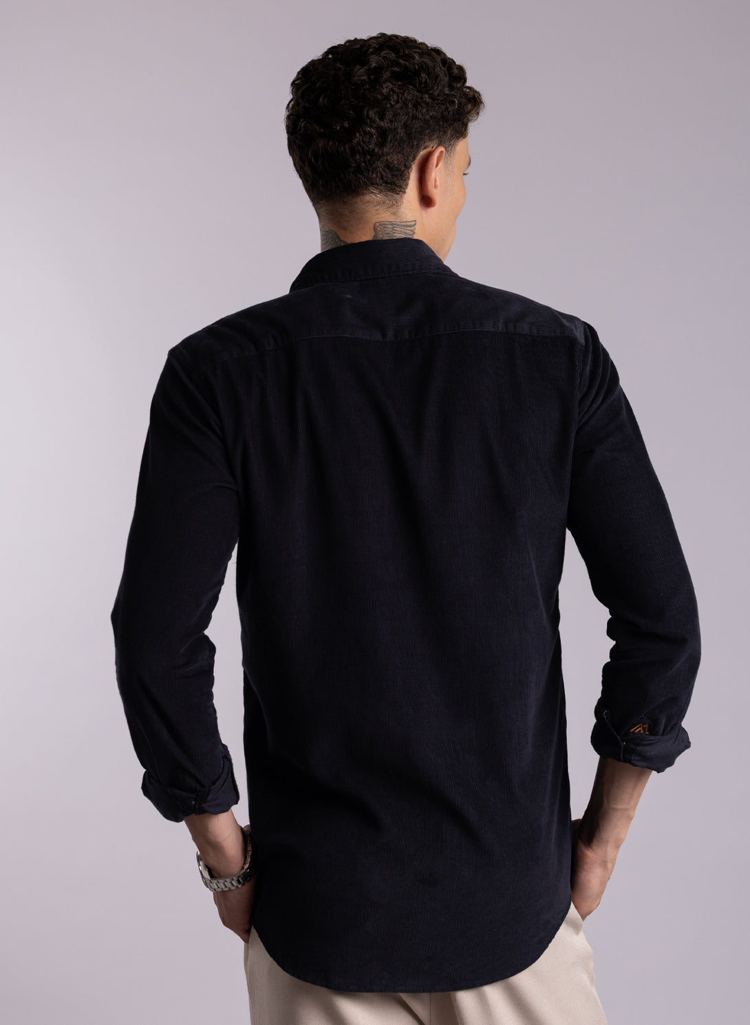 The Ribbed Night Navy Corduroy Shirt with Deep Texture, Slim Fit