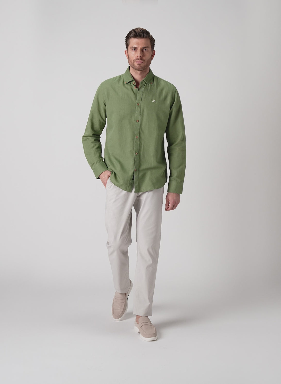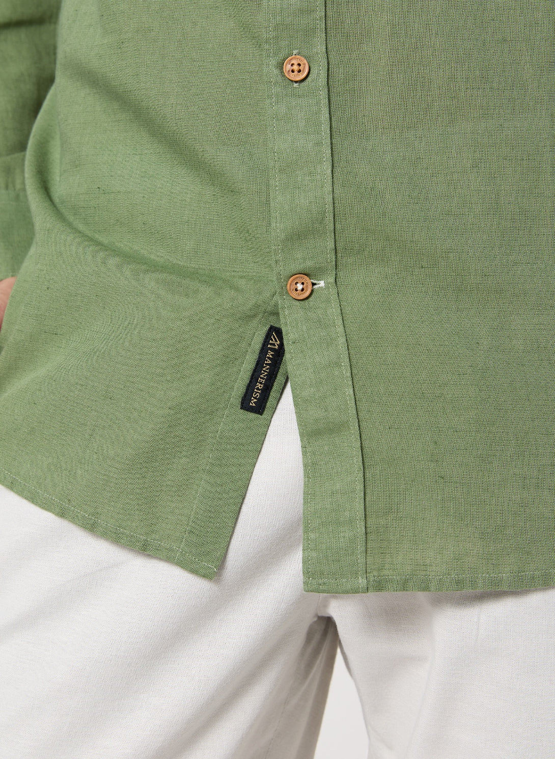 The Spice Market Green Linen Shirt with Exotic Warmth, Comfort Fit
