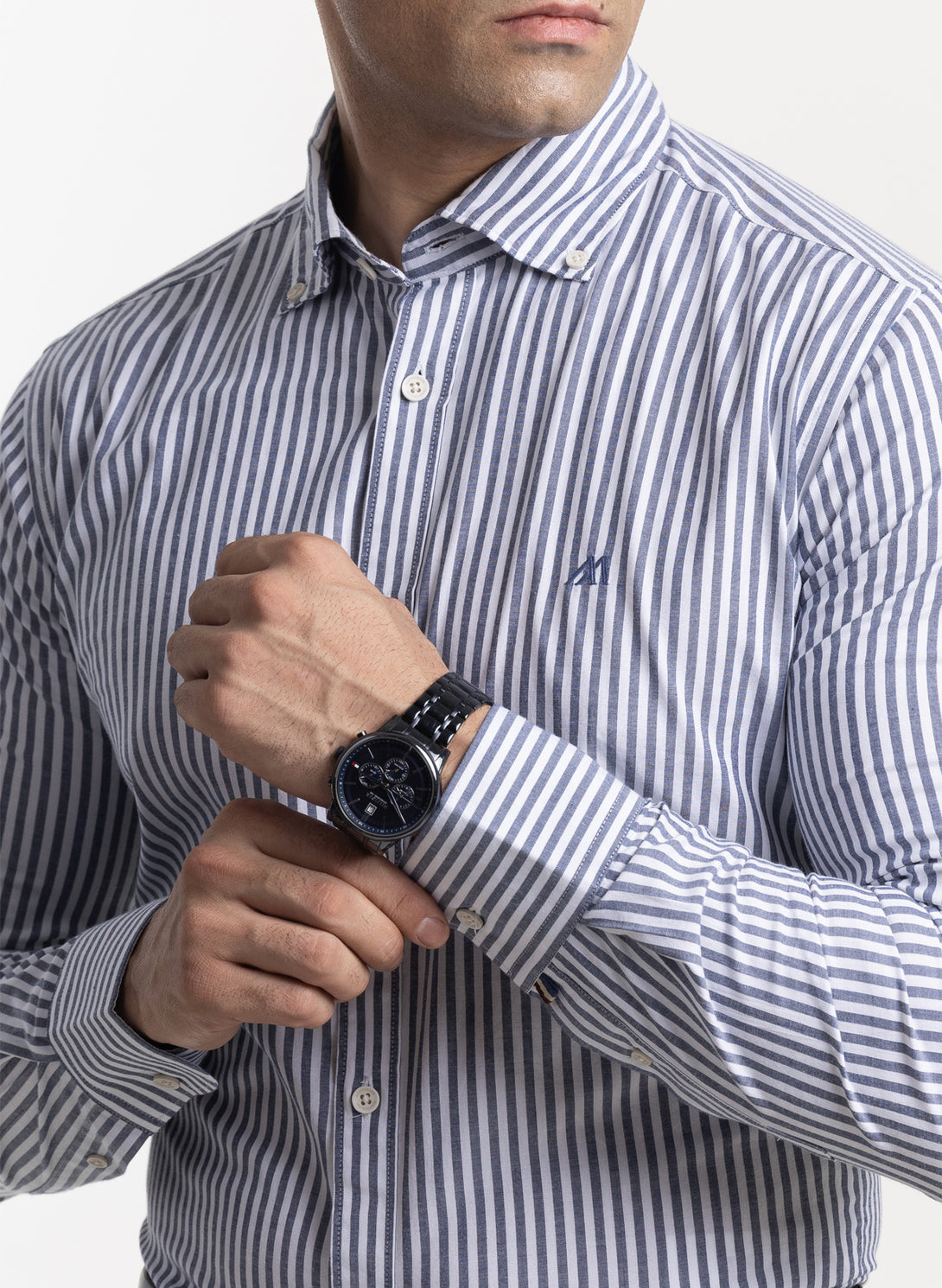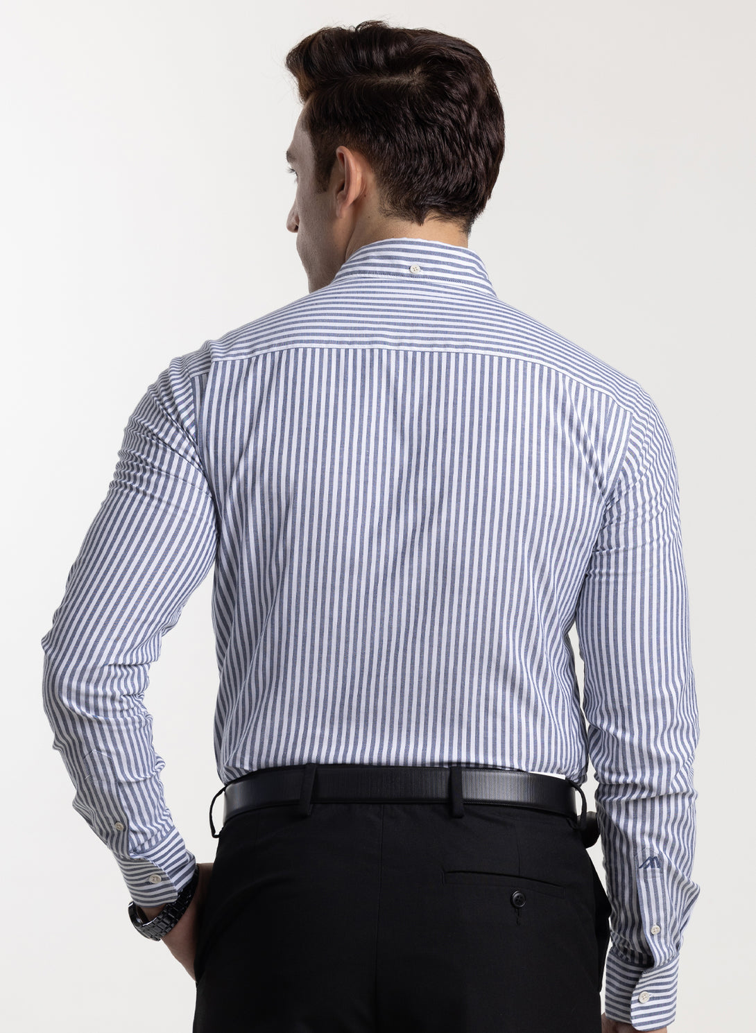 The Tailored Stripes Dark Grey Yarn-Dyed Shirt with Refined Softness, Slim Fit