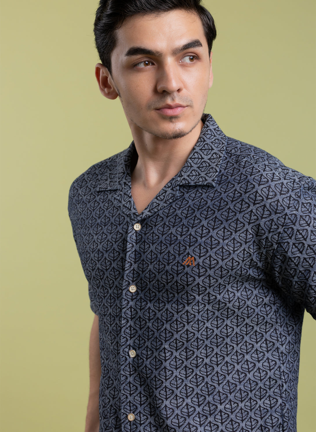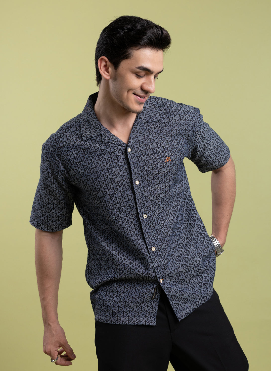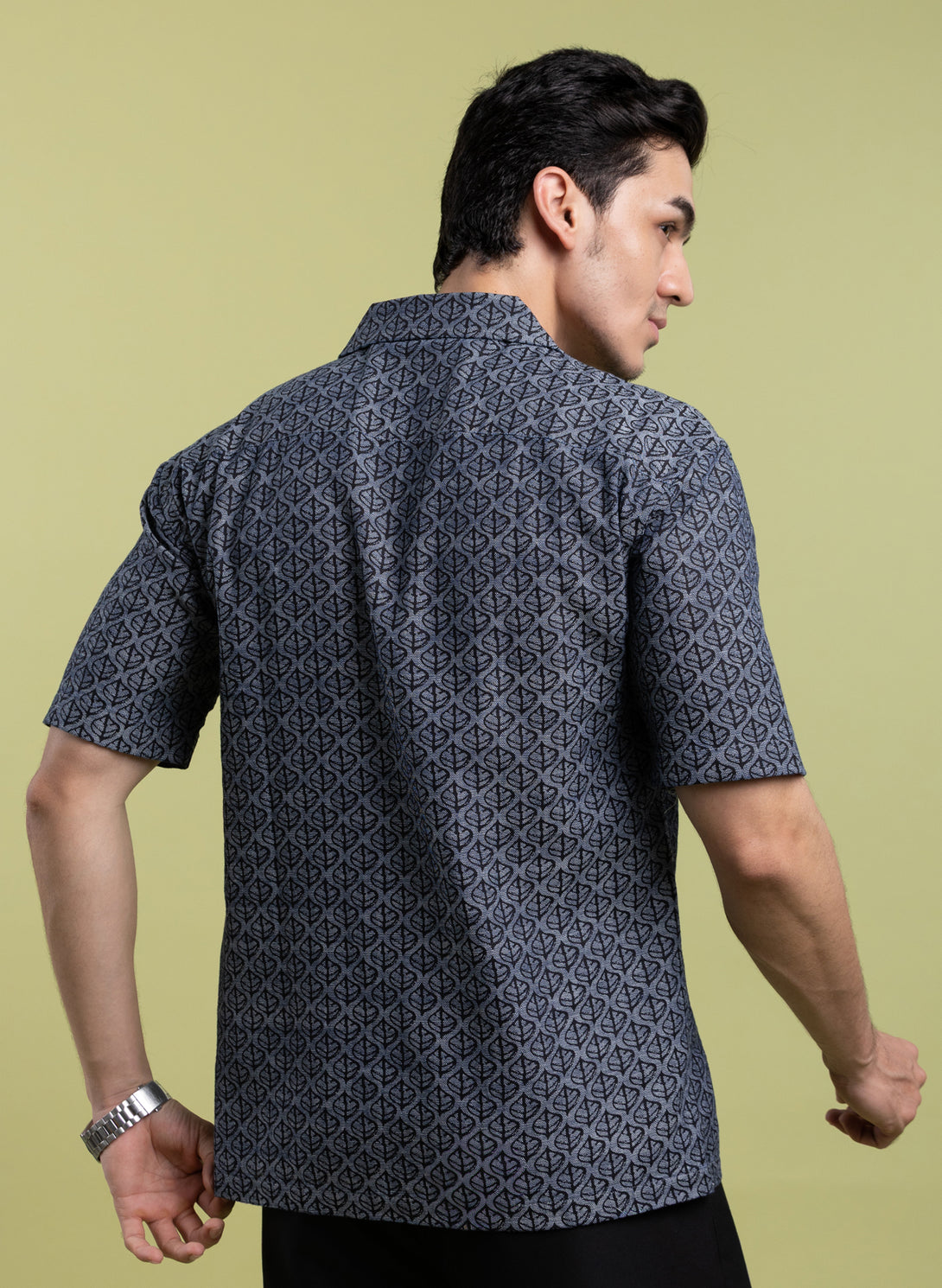 The Urban Texture Grey Denim Shirt with Rugged Printed Finish, Comfort Fit