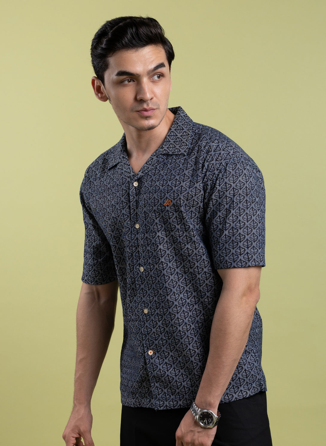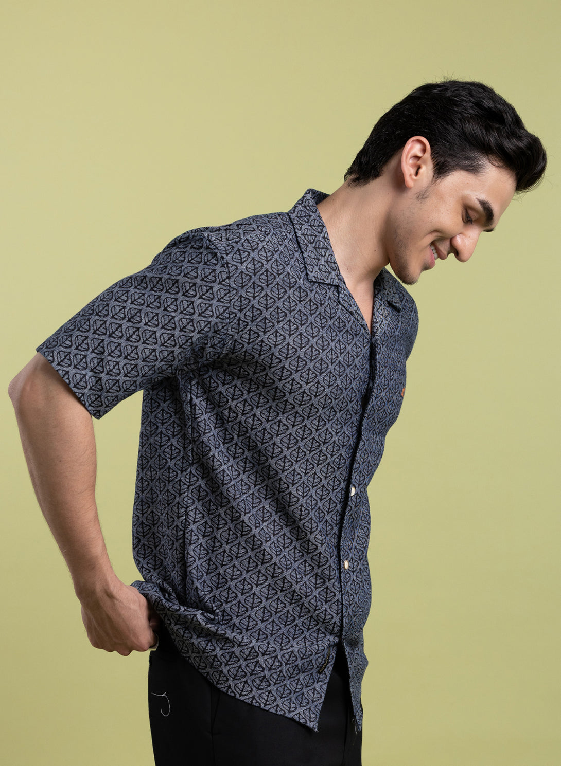 Industrial cool meets everyday comfort. The printed finish gives this grey denim shirt an artisanal textured look, while the 100% cotton construction ensures it wears as good as it looks. The relaxed fit and Cuban collar make it ideal for layering over tees when you want an effortlessly put-together look.