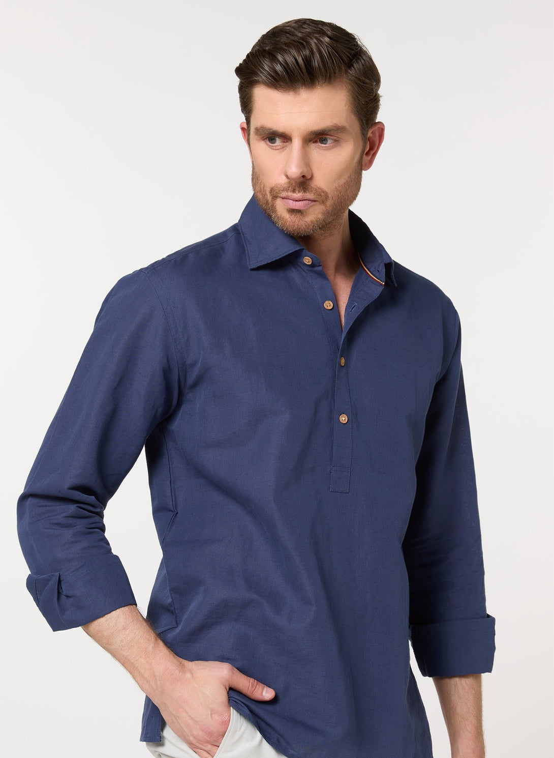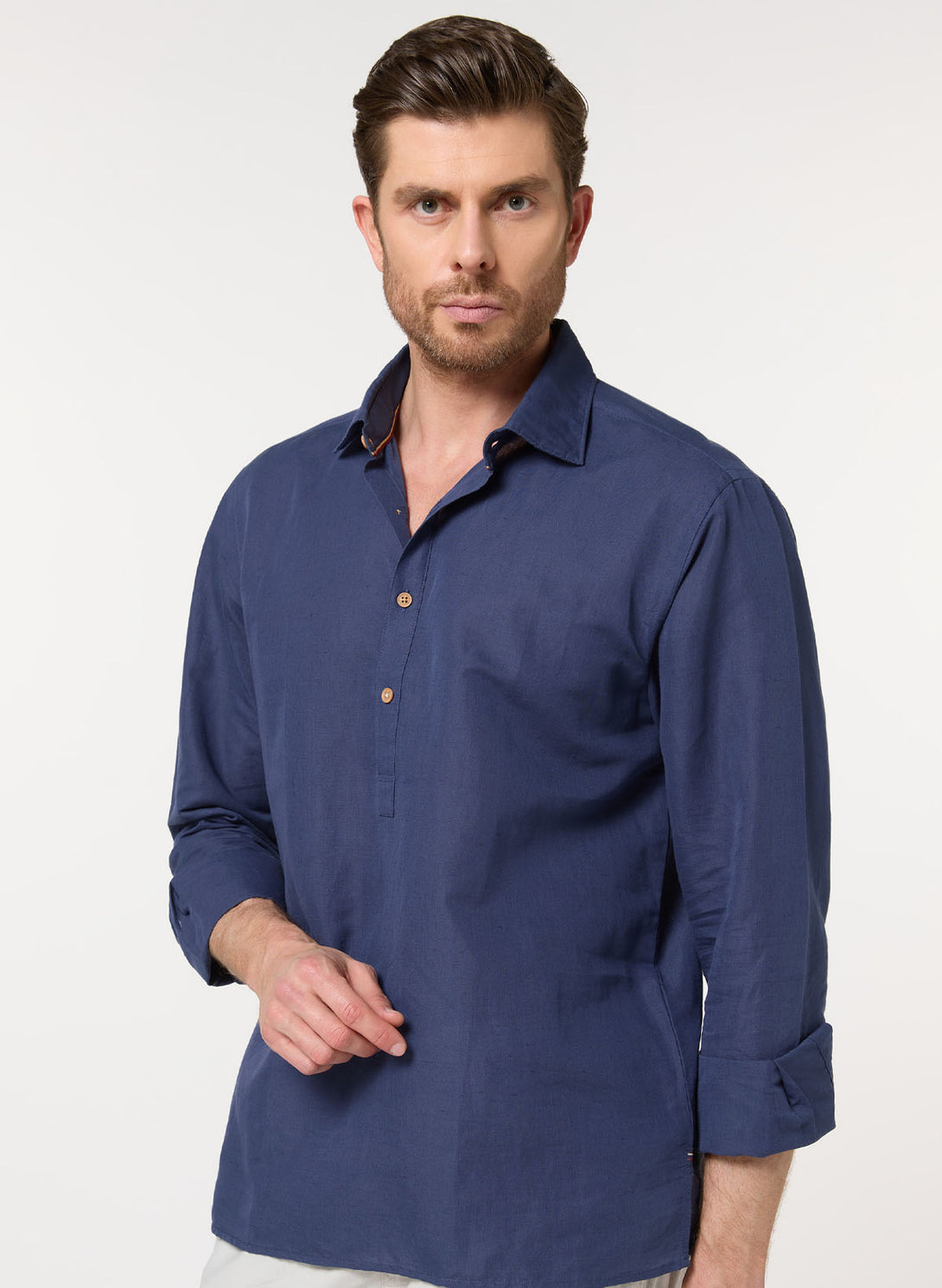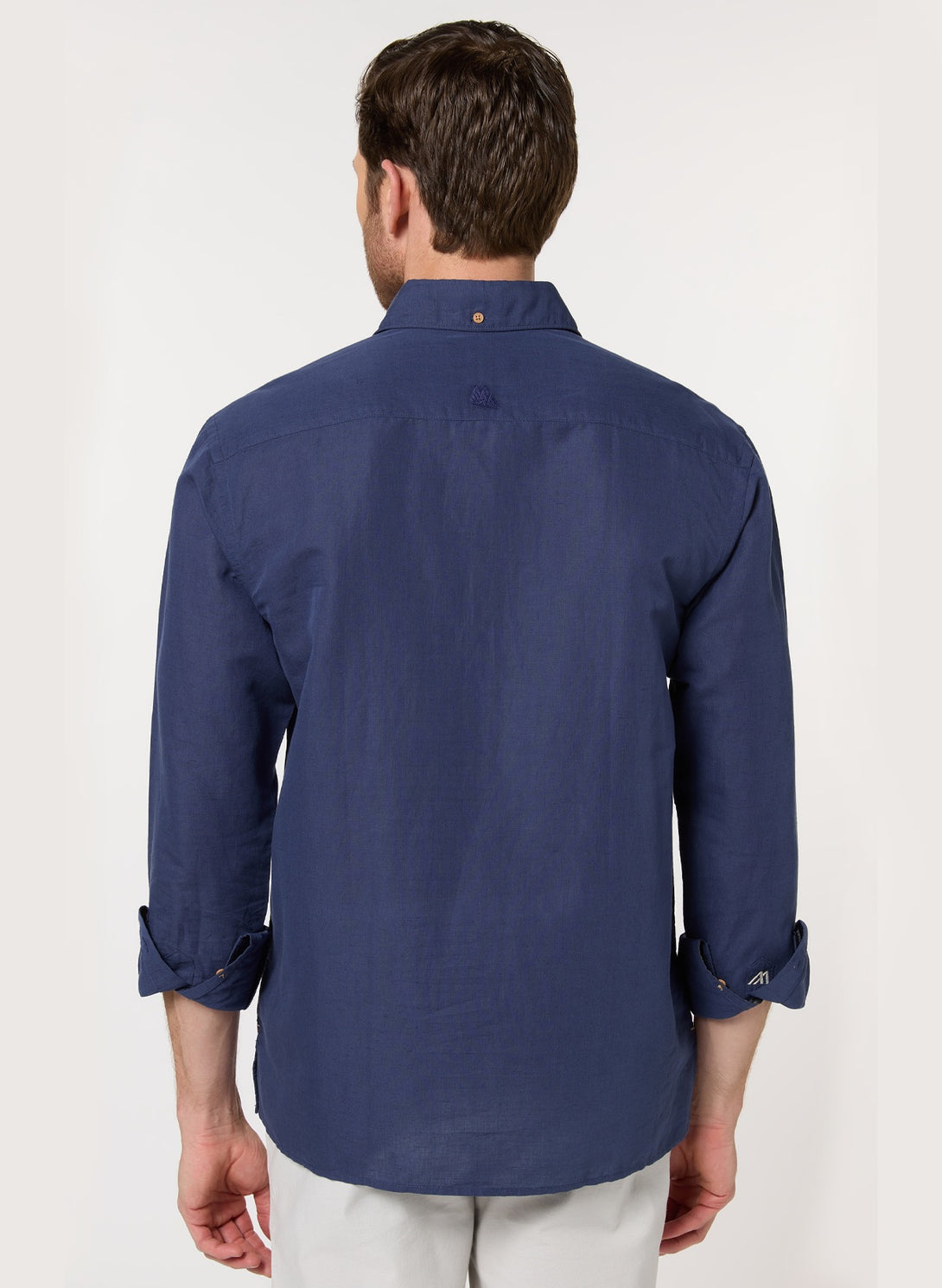 The Watercolor Wash Mirage Blue Linen Shirt with Soft Color Flow, Comfort Fit