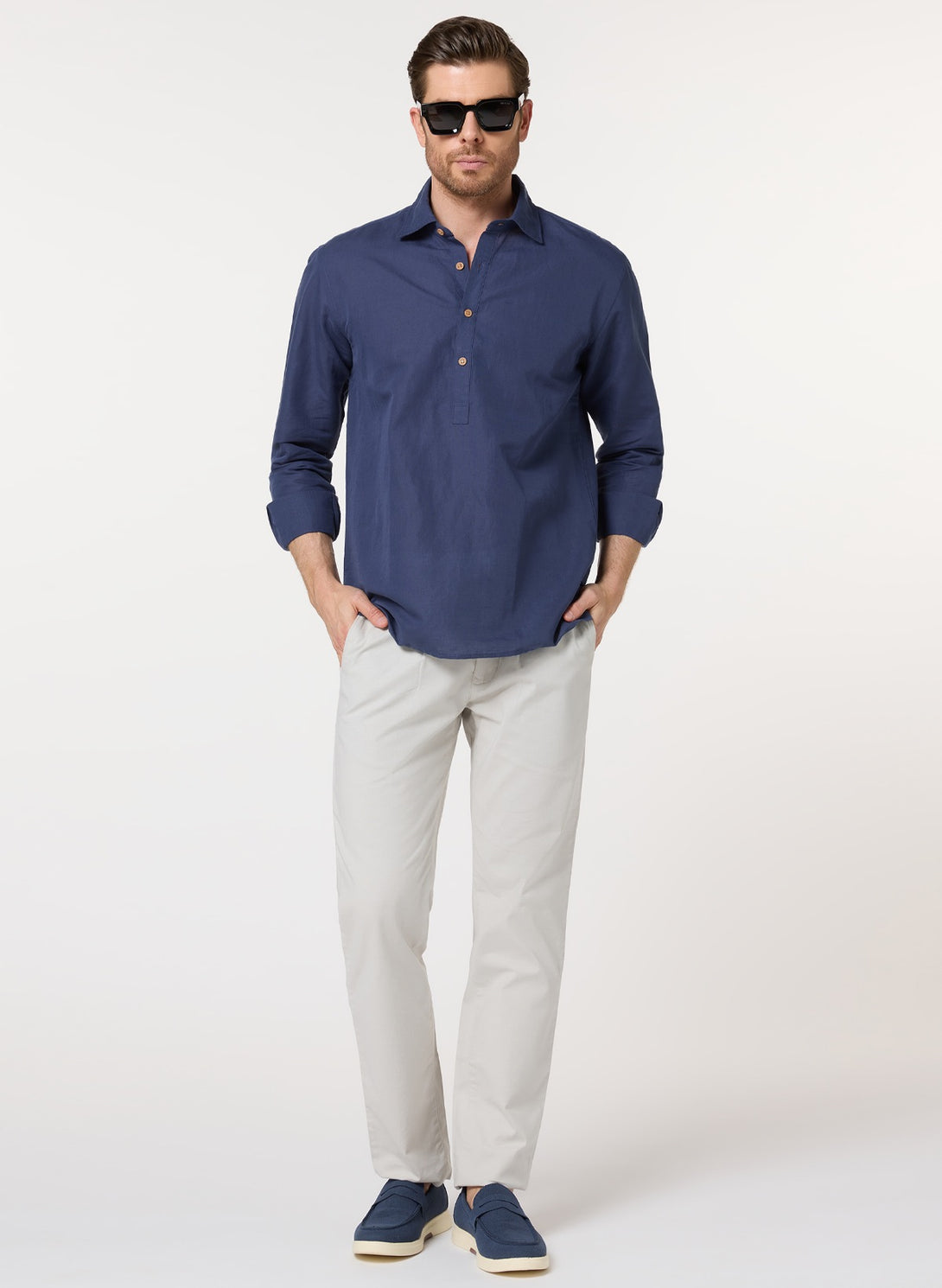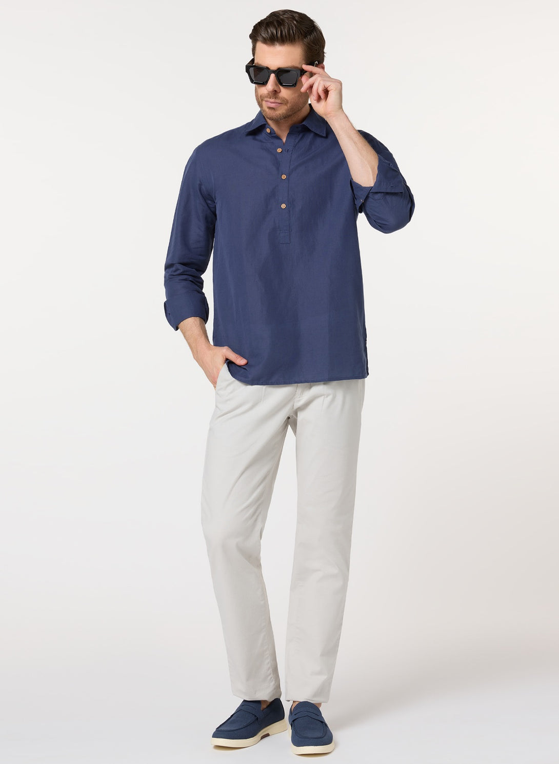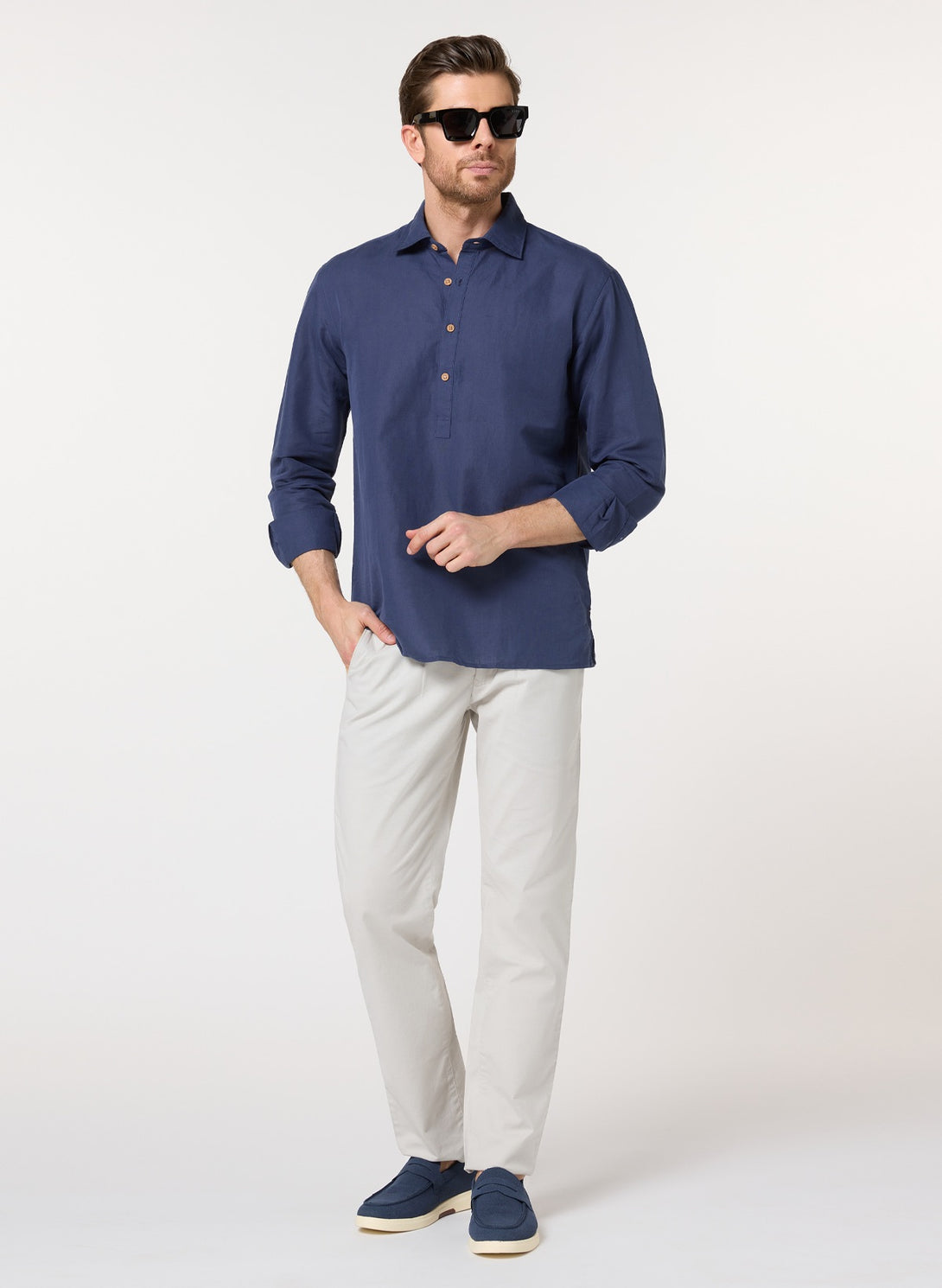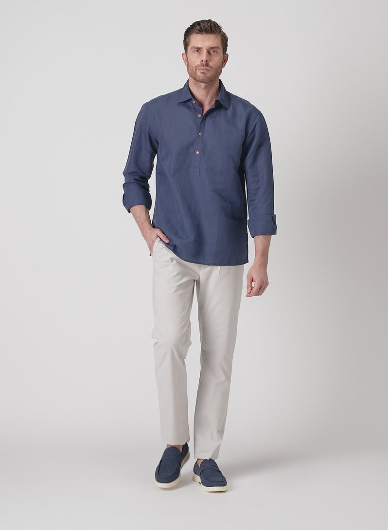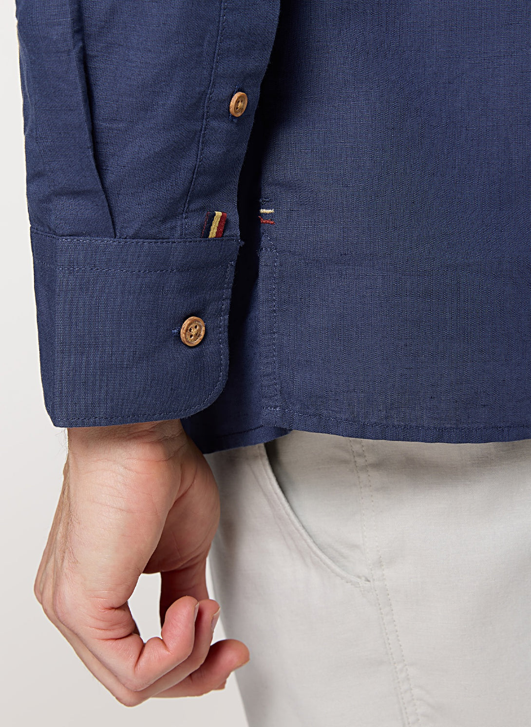 Soft, dreamy elegance. The mirage blue hue has subtle variation that adds visual interest, while the 70% cotton/30% linen blend offers structure with breathability.