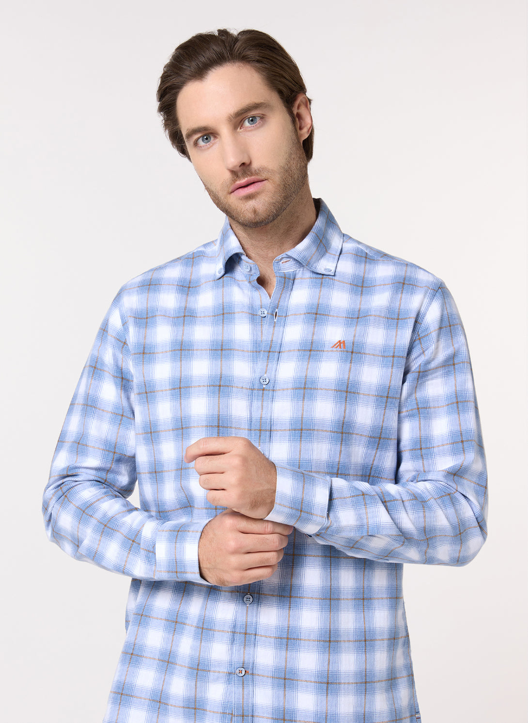 The Woven Herringbone Light Blue Shirt with Subtle Textured Feel, Slim Fit