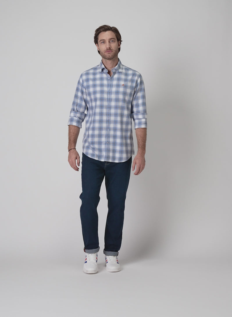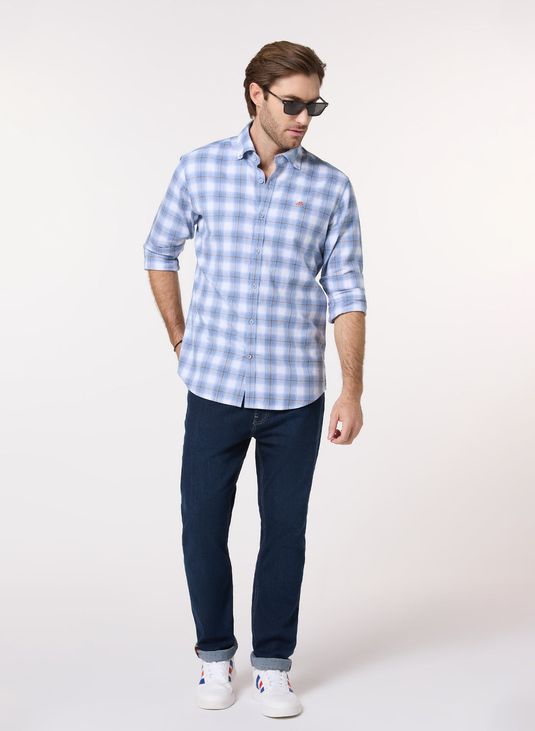Texture that elevates the everyday. The herringbone weave catches the light beautifully, giving this 100% cotton shirt depth and dimension. The slim fit and button-down collar make it office-ready, while the light blue hue keeps it fresh for weekend wear.